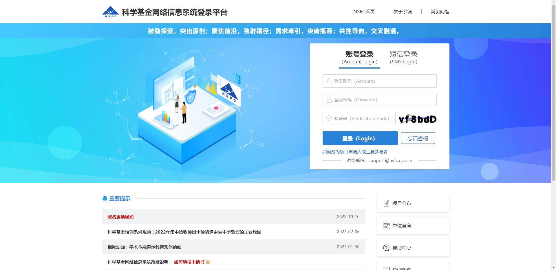 1.首先,我们先登录NSFC系统(今天网站拥堵,可以多试几次),点击右上角的“项目检索”,进入项目检索界面。