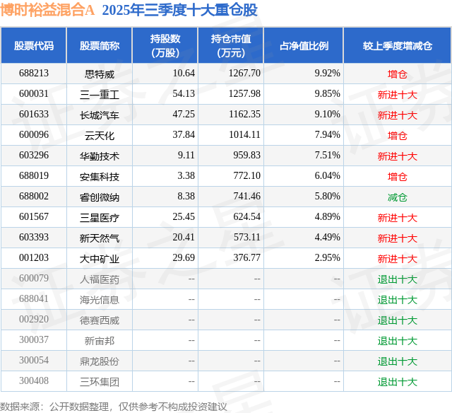 根据2025基金Q3季报公募基金重仓股数据,重仓该股的公募基金共1家,其中持有数量最多的公募基金为博时基金的博时裕益混合A。博时裕益混合A目前规模为1.28亿元,最新净值2.9583(10月30日),较上一交易日下跌0.11%,近一年上涨30.09%。该公募基金现任基金经理为王冠桥。