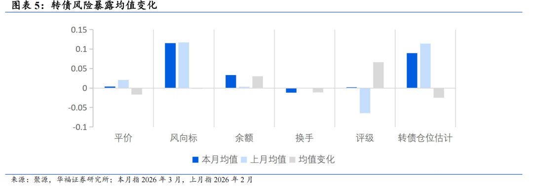 在转债资产上,根据风险因子暴露测算,固收+基金相对上月整体上调了对余额的风险暴露,仓位略有下调。