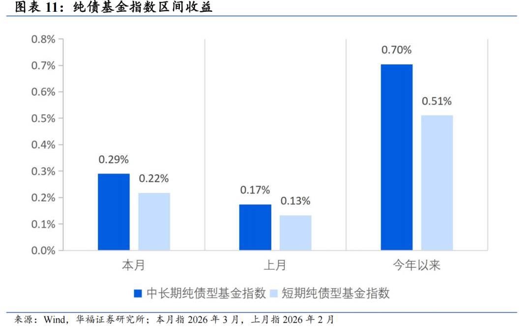 中长期纯债型基金指数3月上涨0.29%,短期纯债型基金指数2月上涨0.22%。