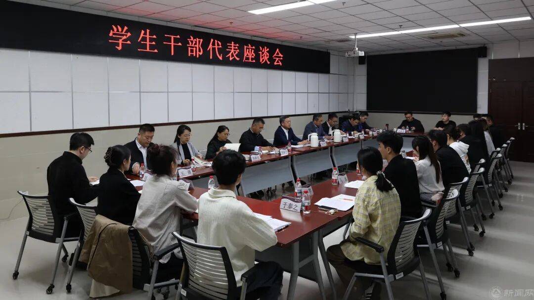 4月24日,党委书记张启鸿与学生干部代表座谈交流,勉励同学们要始终将个人成长与强国建设、民族复兴伟业紧密结合,努力成长为综合素质全面、学业基础扎实、作风过硬的青年骨干。